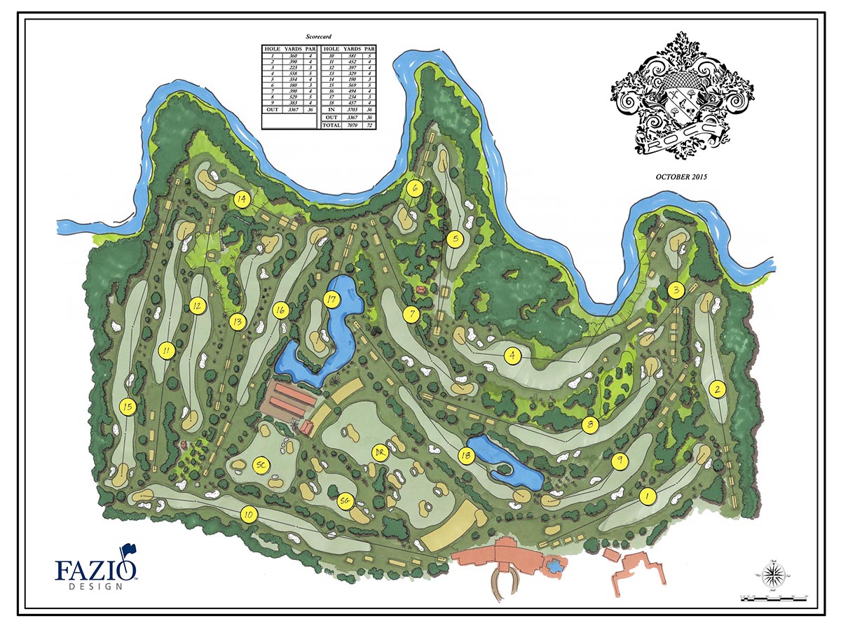 The John F. Staub designed clubhouse sits at the end of River Oaks Blvd.