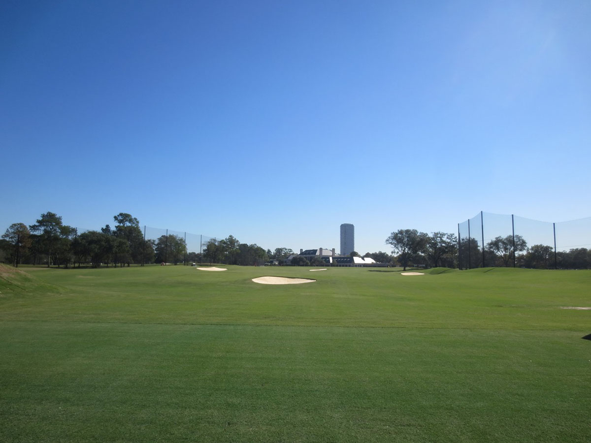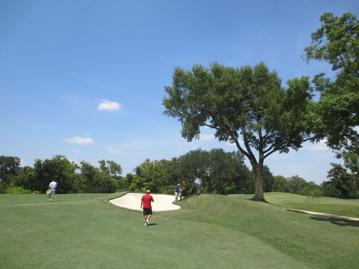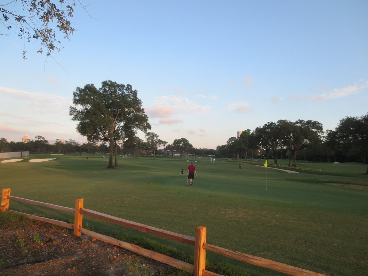 The new par three 14th is near Buffalo Bayou, but high above the banks.