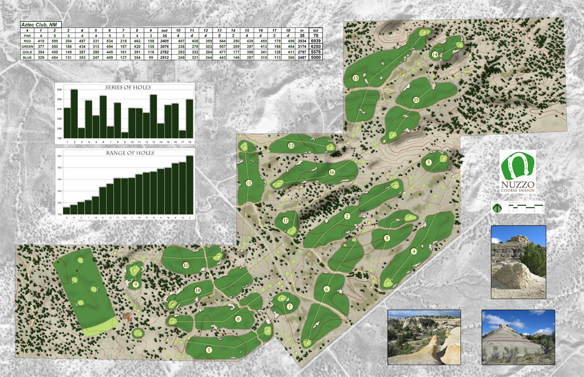 Aztec Club - New Mexico NCD was hired to route a core public golf course on a stunning site with dozens of natural land forms to integrate into the course. The property in the north eastern quadrant is most stunning, and will allow for an outstanding sequence of holes. The project has passed several hurdles and is getting closer to construction. |