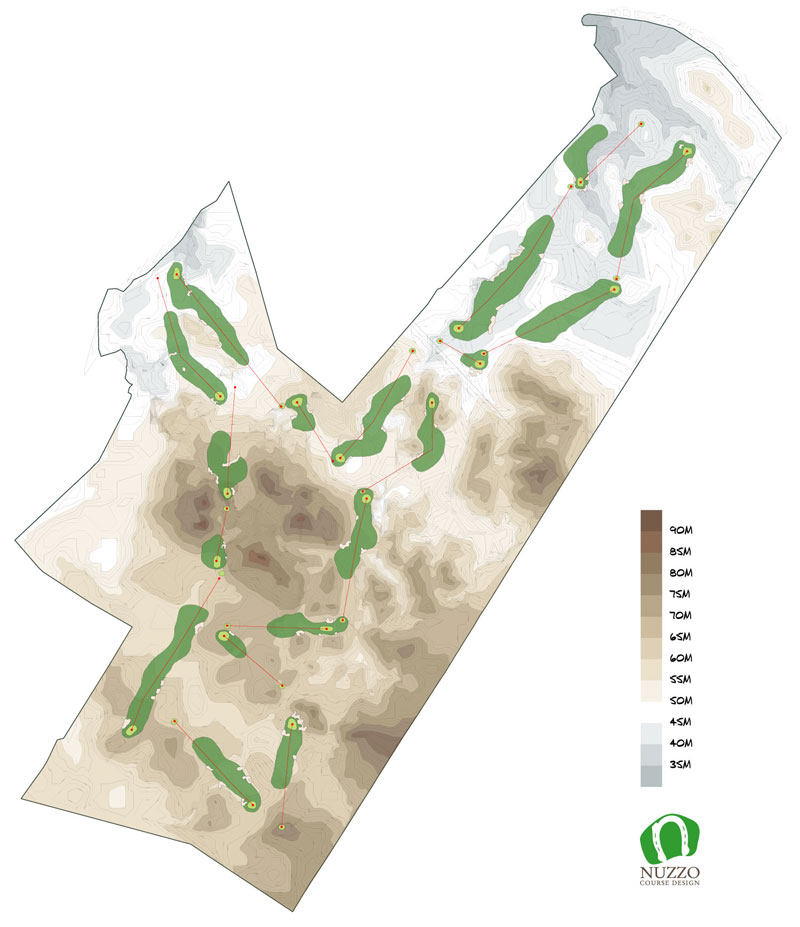 Innovative Routing Studies "It is not the individually great holes that make a great golf course. It is rather the relationship that exists between one hole and another..." Tom Simpson (1877 - 1964) Review my weblog for detailed analysis behind the evolution of a routing plan The Bones of a Golf Course, Notes on routing a golf course, Native American Casino |