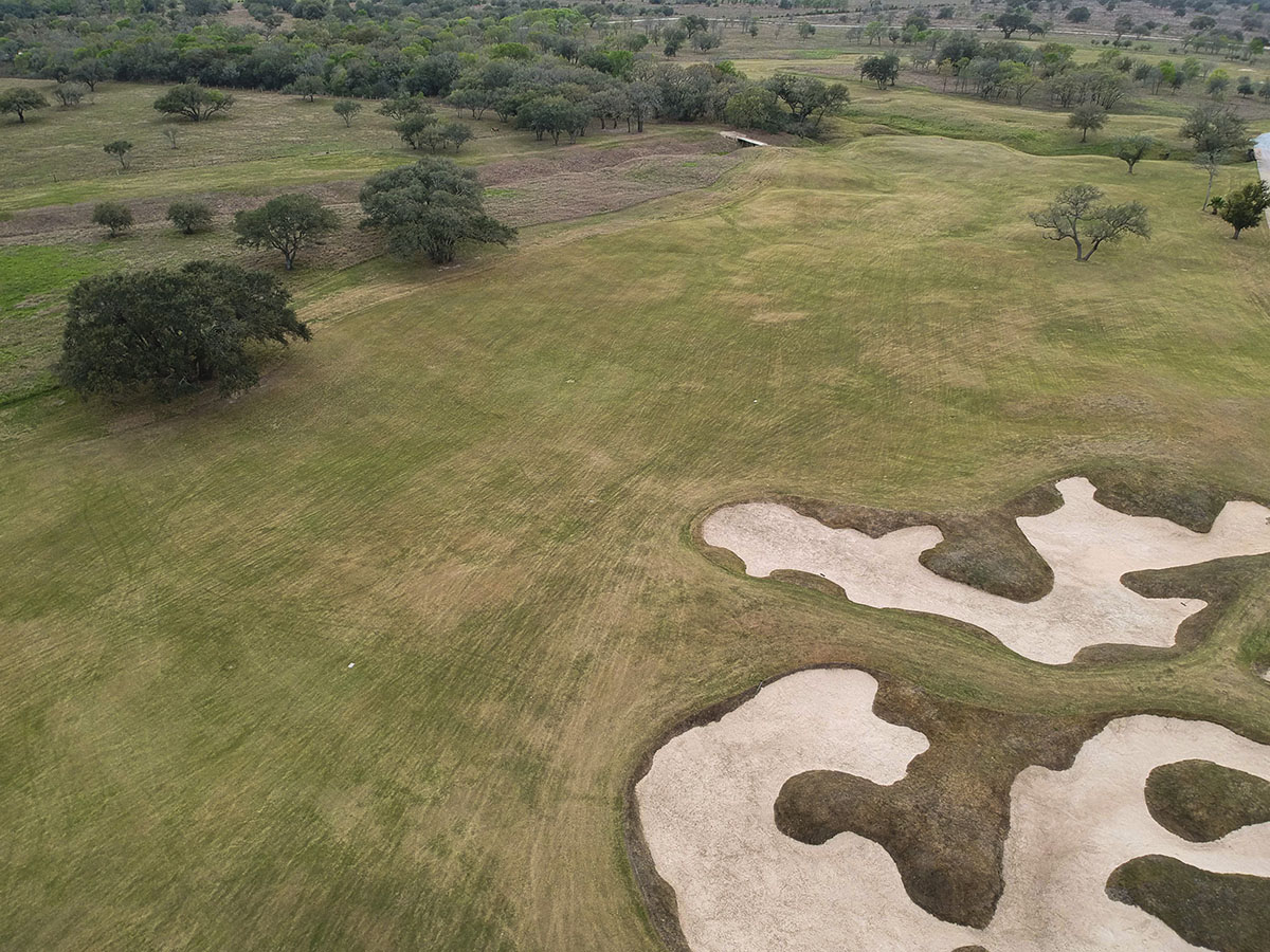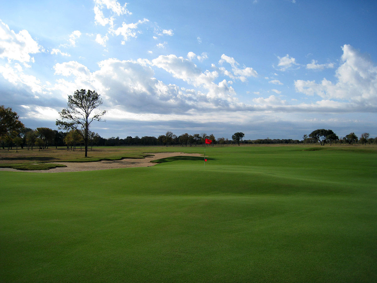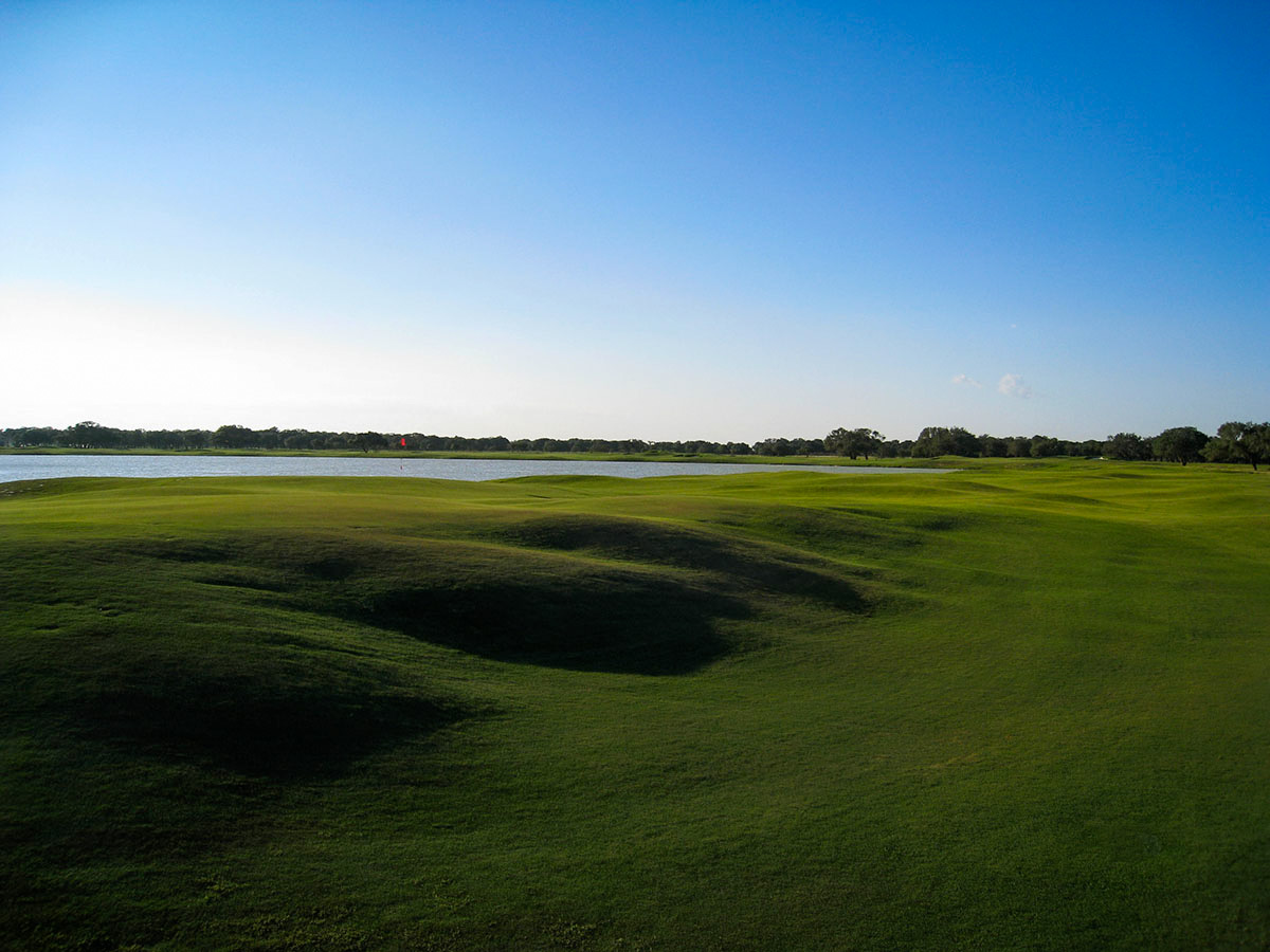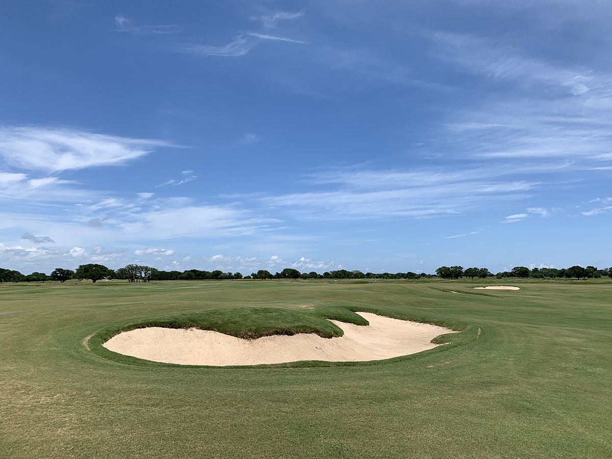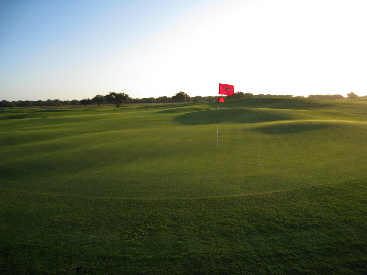 Private golf courses like this are notoriously short-lived, because it's one thing to spend the money to build a course, and another thing to maintain it year after year as the only dues-paying member. To address this, the entire course is mowed at the same height apart from the greens, and most of the 61 bunkers are quite small and easy to take care of. The designer' one extravagance was to build a set of large, undulating greens to provide a lot of day-to-day variety in the setup for a client who plays nearly every day ... but they were also ready to convert some portions of those greens back to fairway if Al didn't value that variety. Fortunately, he has, as there is some responsibility in being the owner of the best set of greens in Texas."
