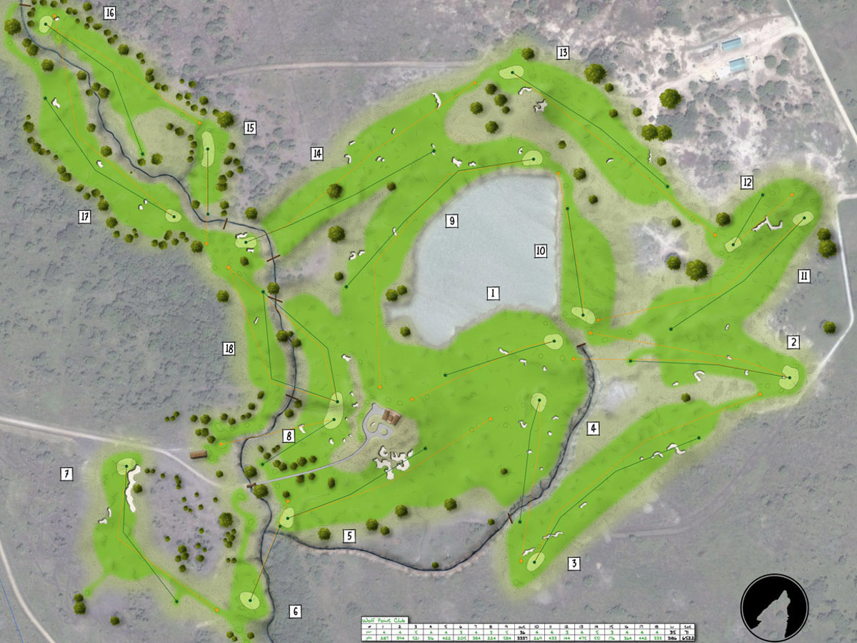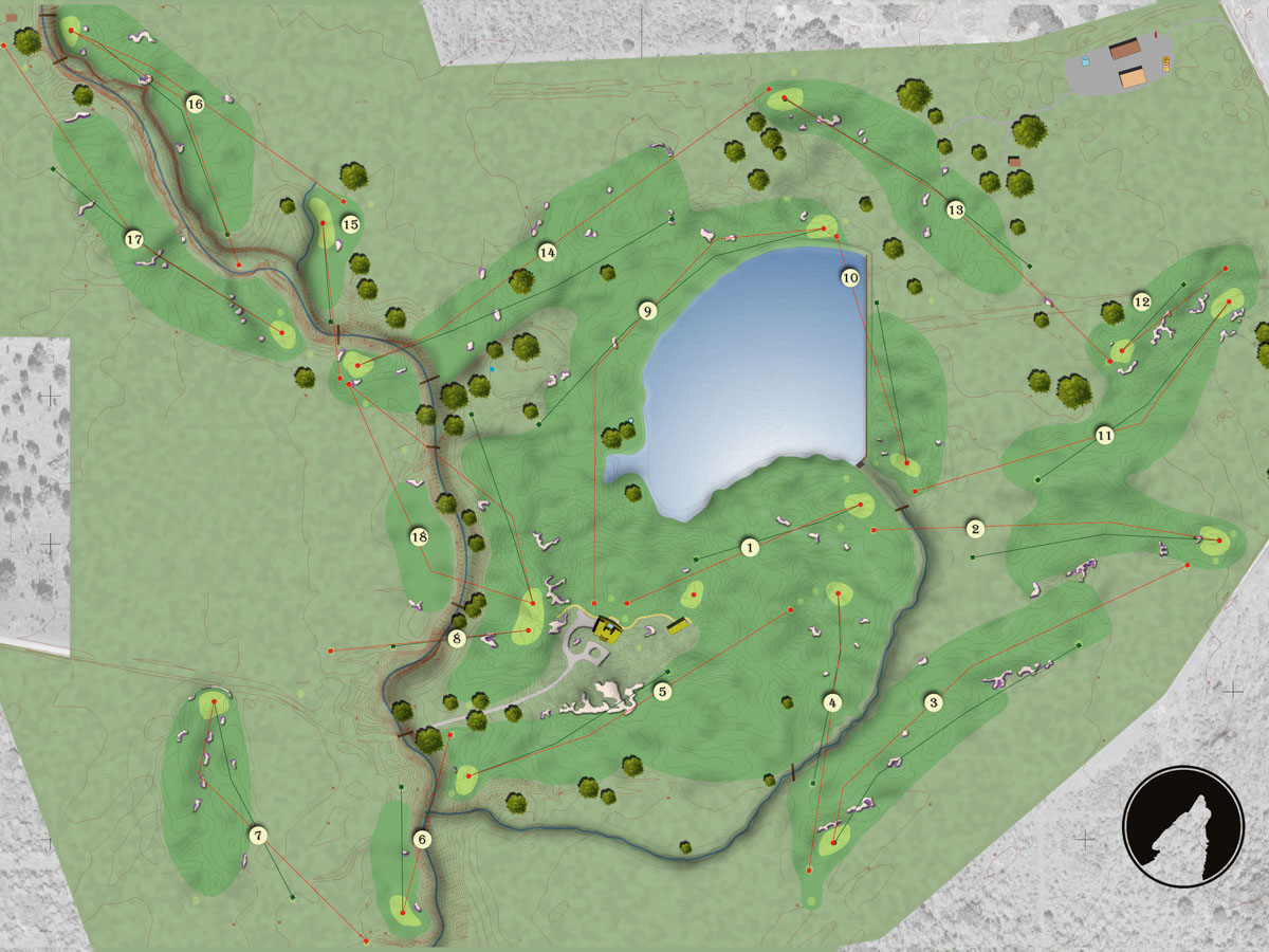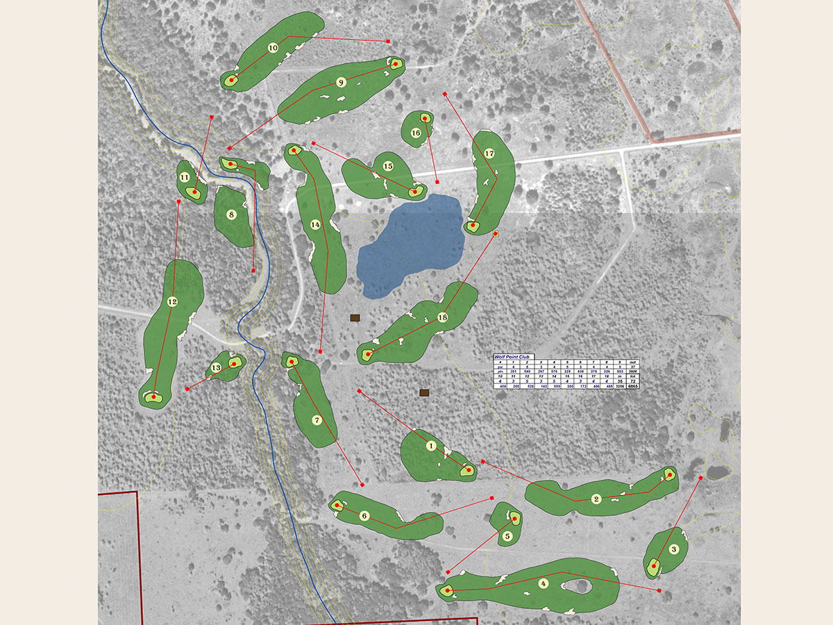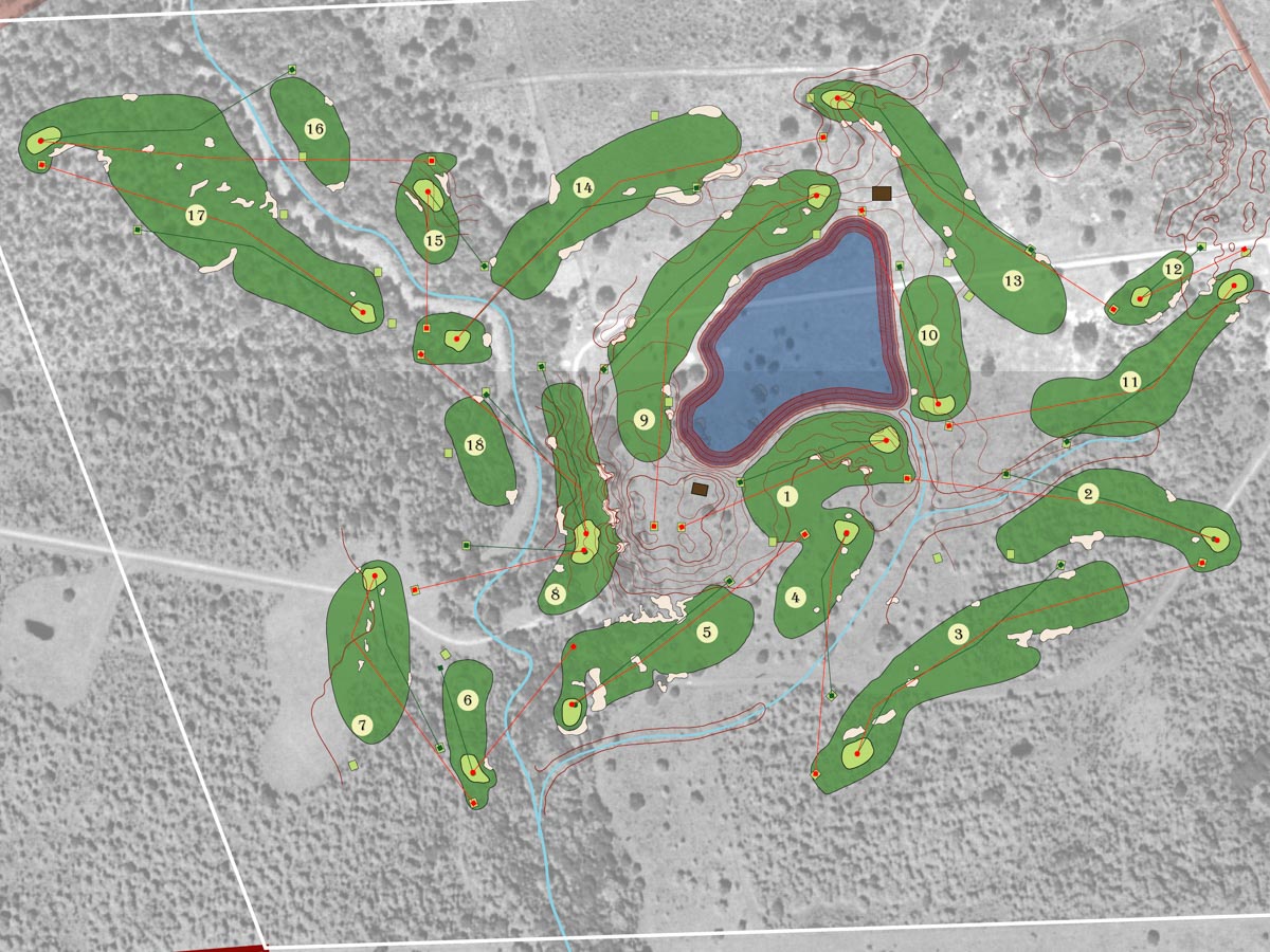 Routing #9b started to explore some of the land Al asked us to shy away from. Holes 15-17 orient clockwise.
